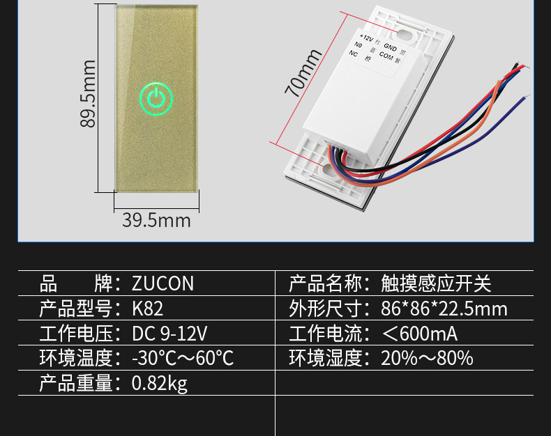 ZUCON祖程K82觸摸出門按鈕祖程電子門禁開關(guān)門鎖開關(guān)紅外觸摸開關(guān)