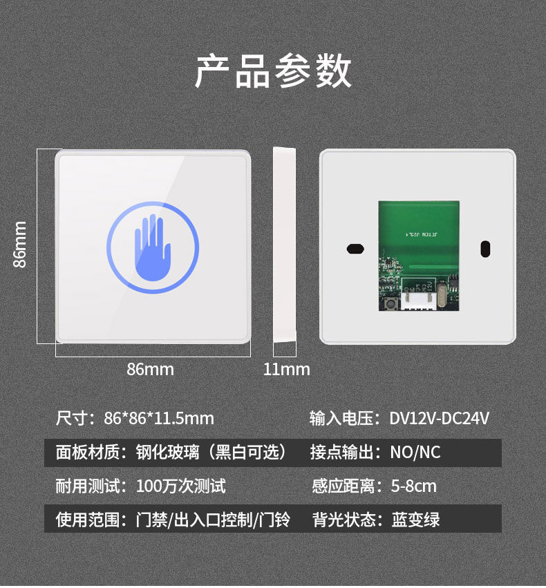 ZCON祖程K83非接觸式感應(yīng)開關(guān)門禁系統(tǒng)觸摸出門按鈕遙控自動門開關(guān)