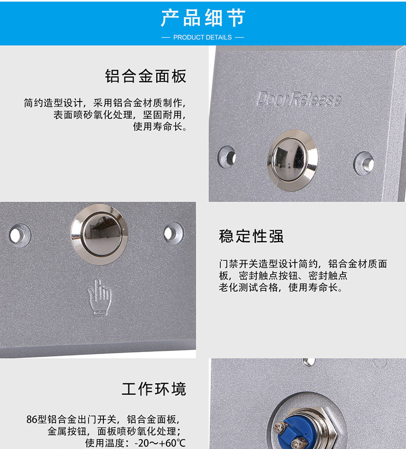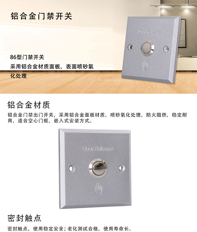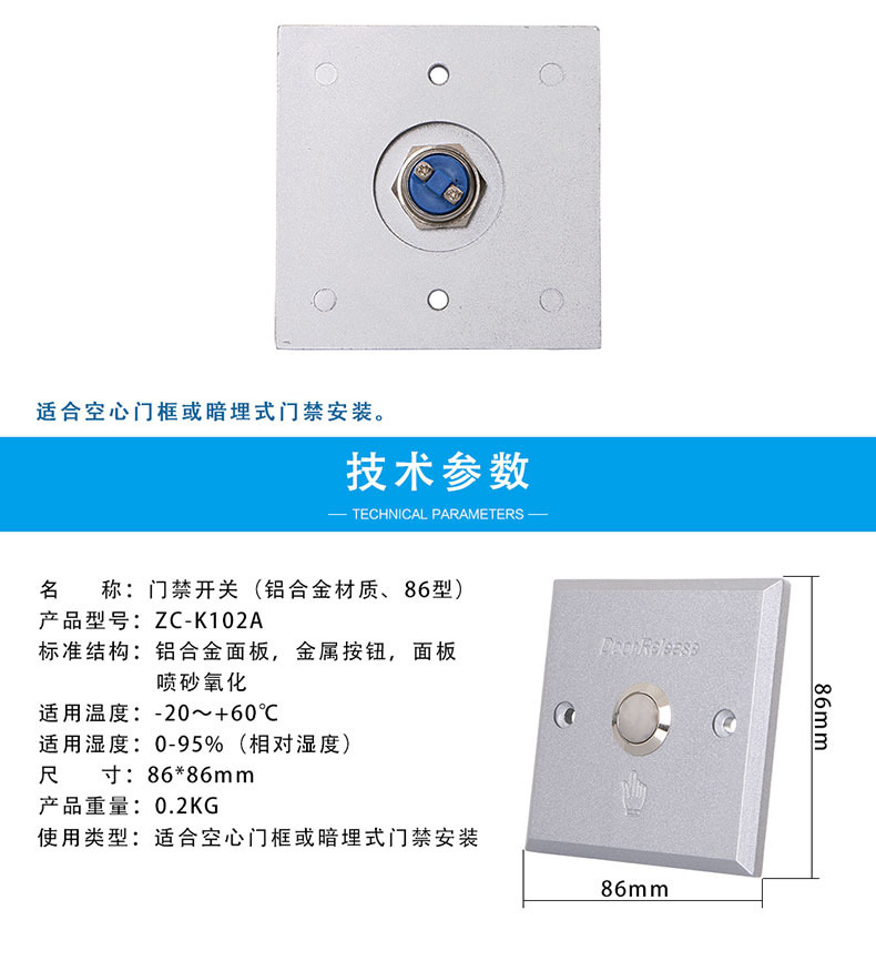 ZUCON祖程ZC-K102A 電子門禁開關 門鎖開關 出門按鈕 明裝暗裝 鋁合金