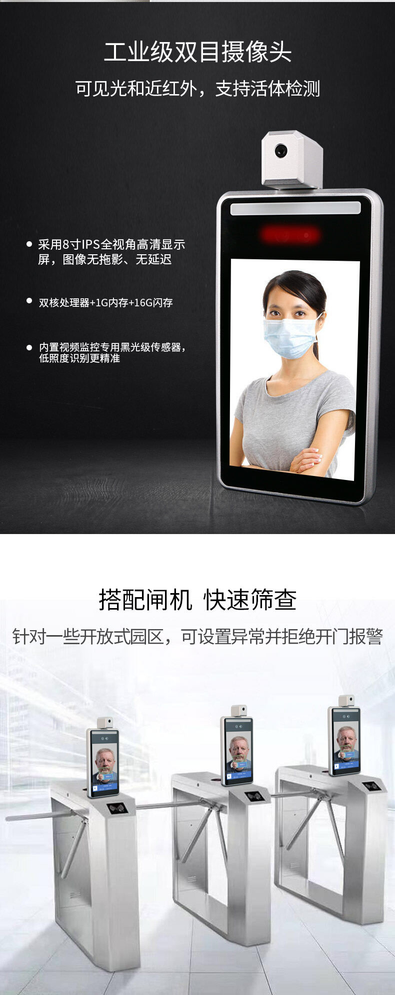 ZUCON祖程MH8-TS人臉識別口罩測溫通道閘機系統防疫管理紅外線檢測門禁考勤