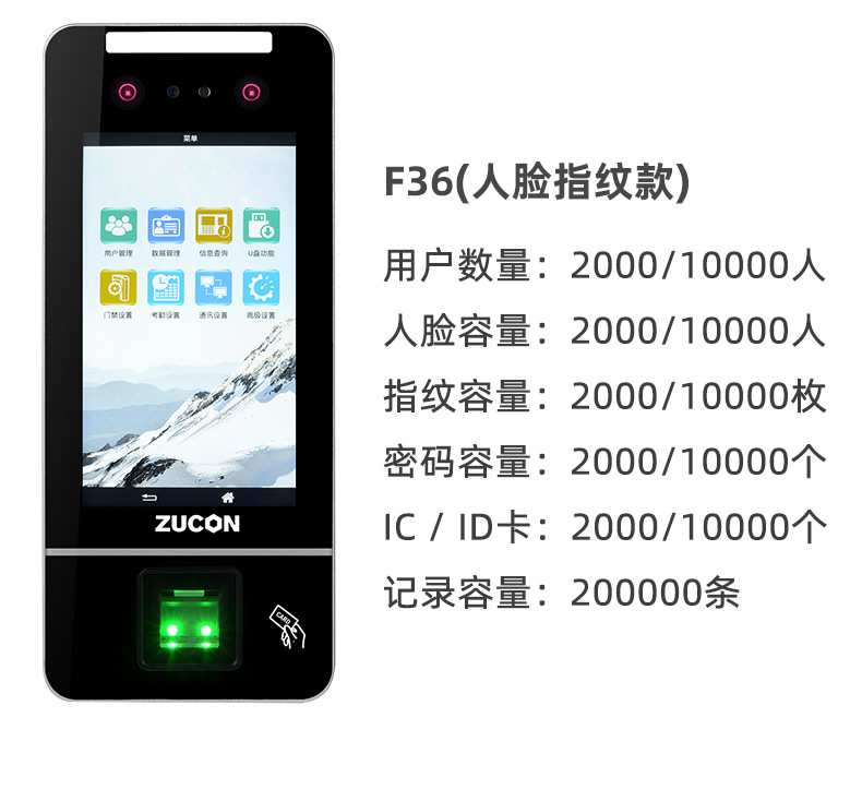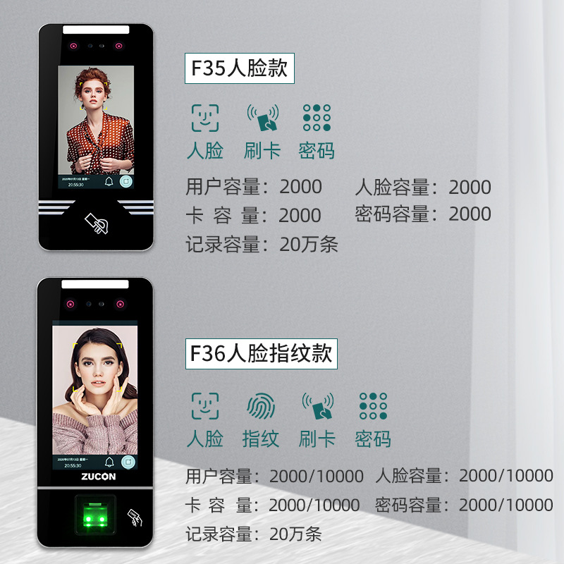 ZUCON祖程F35-F36動態(tài)人臉識別門禁一體機(jī)刷臉門禁系統(tǒng)指紋刷卡電子門禁鎖