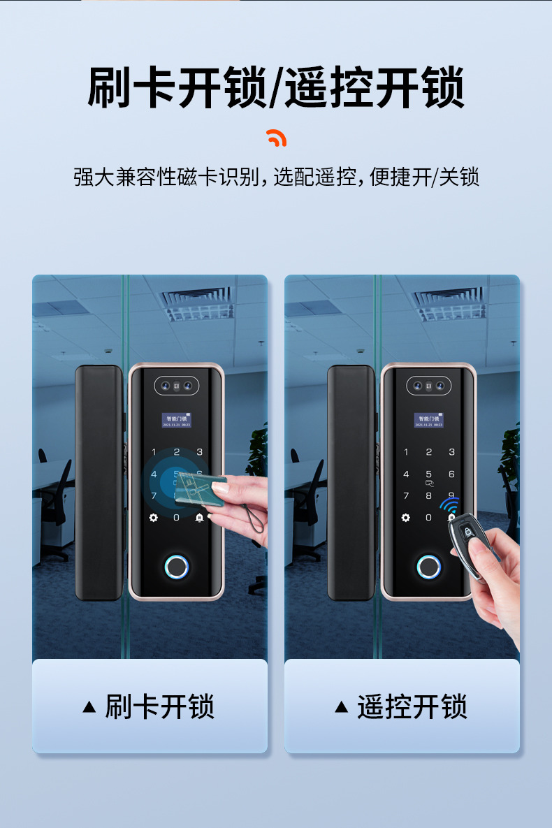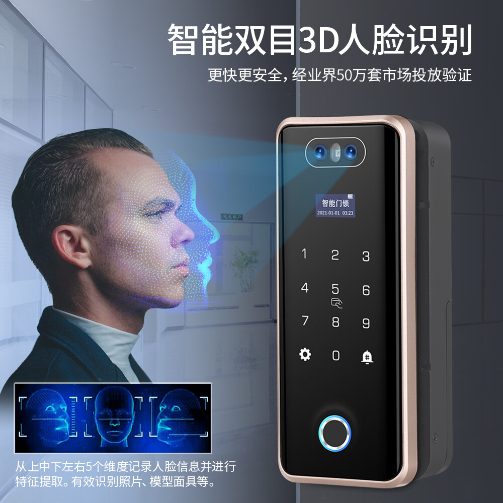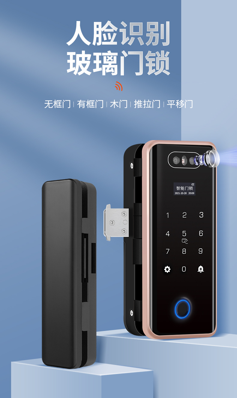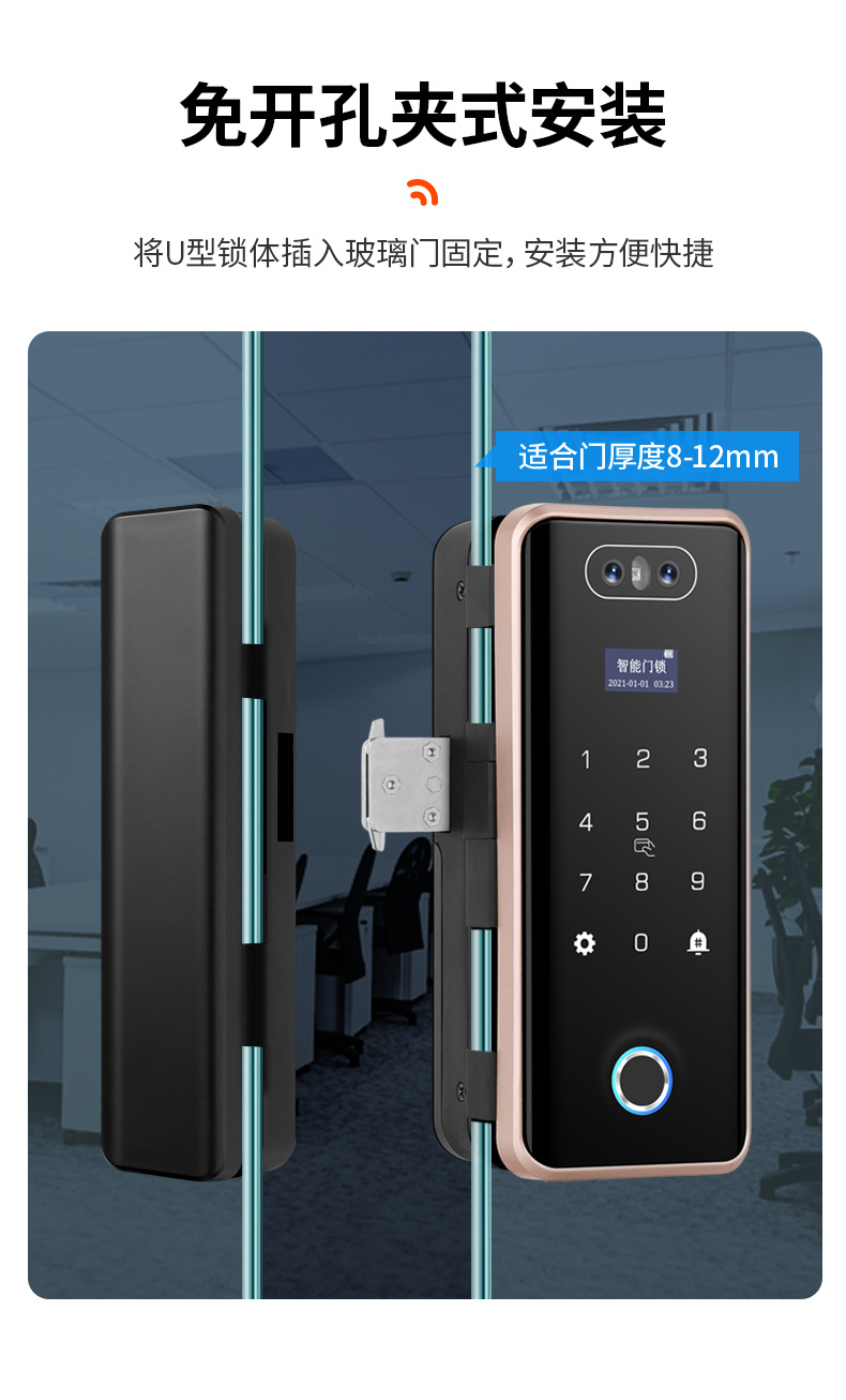 ZUCON祖程F628人臉識別玻璃門指紋鎖免開孔辦公室單開雙門有框密碼鎖