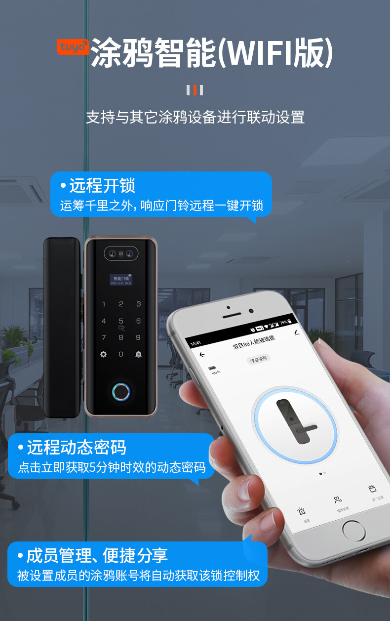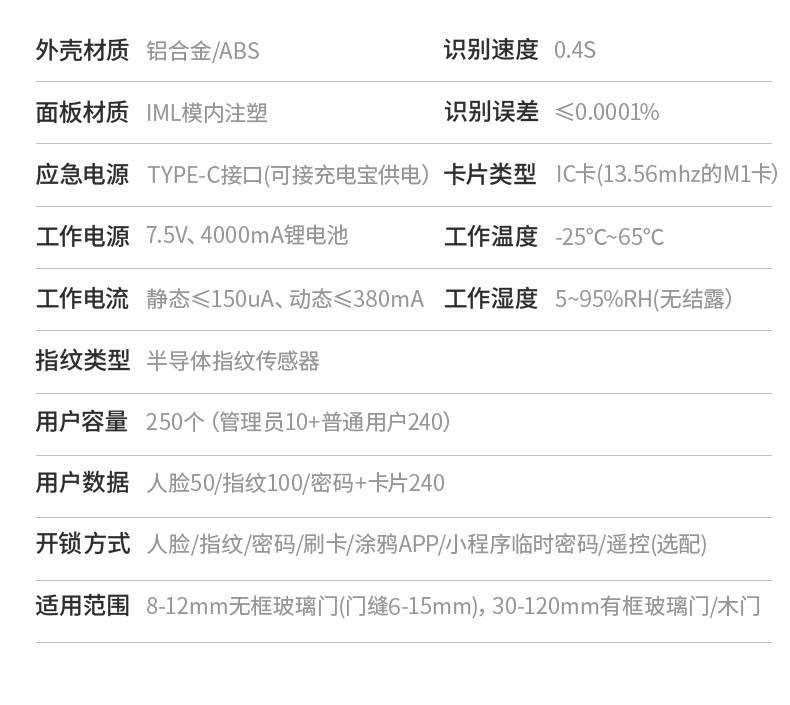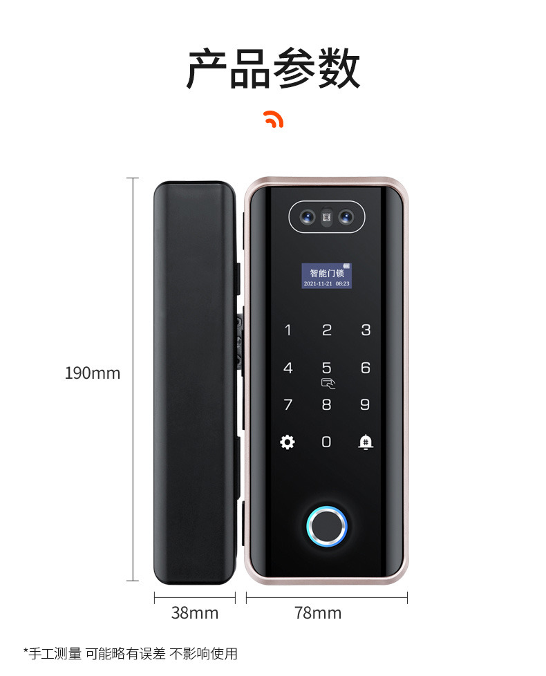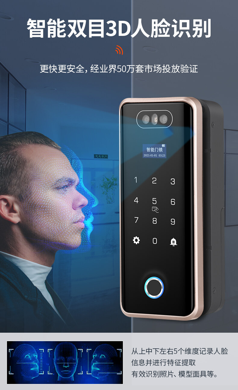 ZUCON祖程F628人臉識別玻璃門指紋鎖免開孔辦公室單開雙門有框密碼鎖