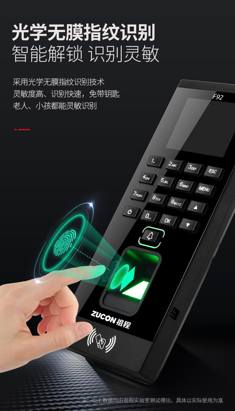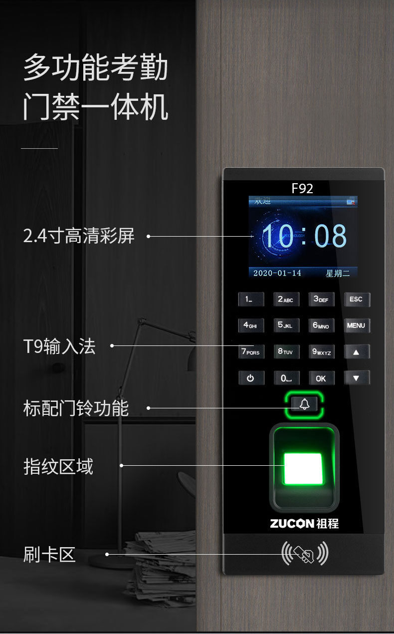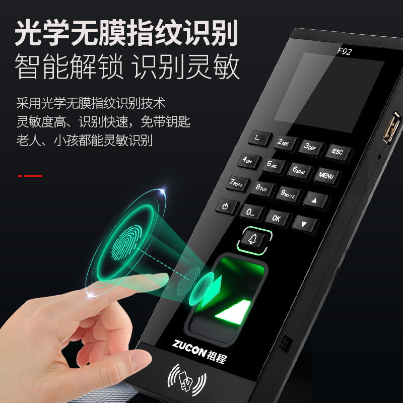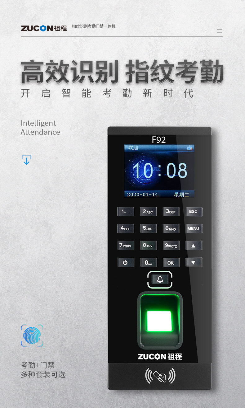 ZUCON祖程F92門禁一體機指紋刷卡密碼門禁系統一體機帶考勤門禁主機