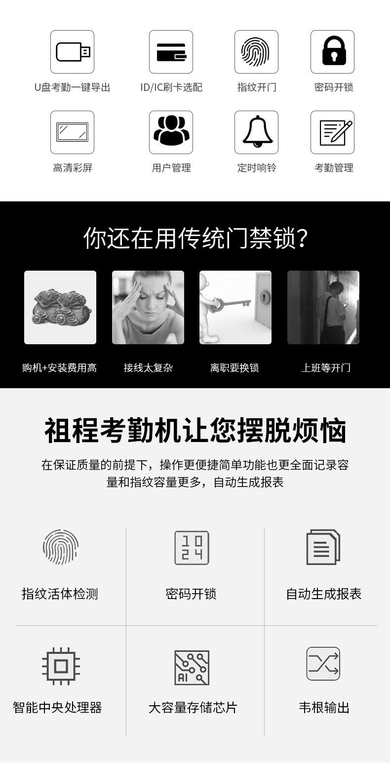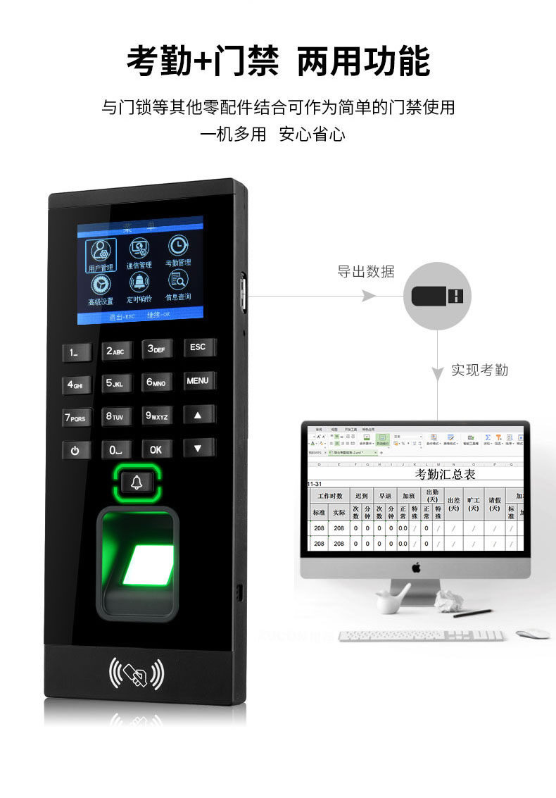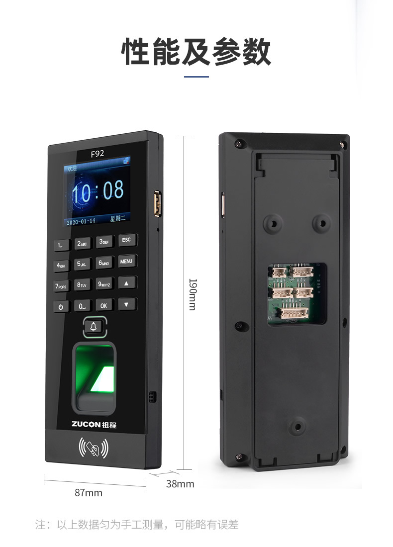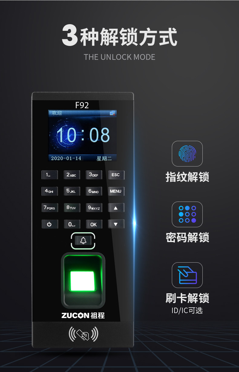 ZUCON祖程F92門禁一體機指紋刷卡密碼門禁系統一體機帶考勤門禁主機