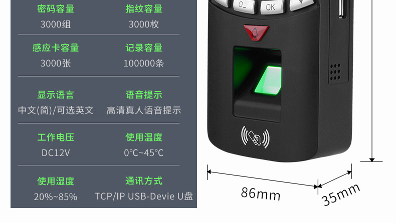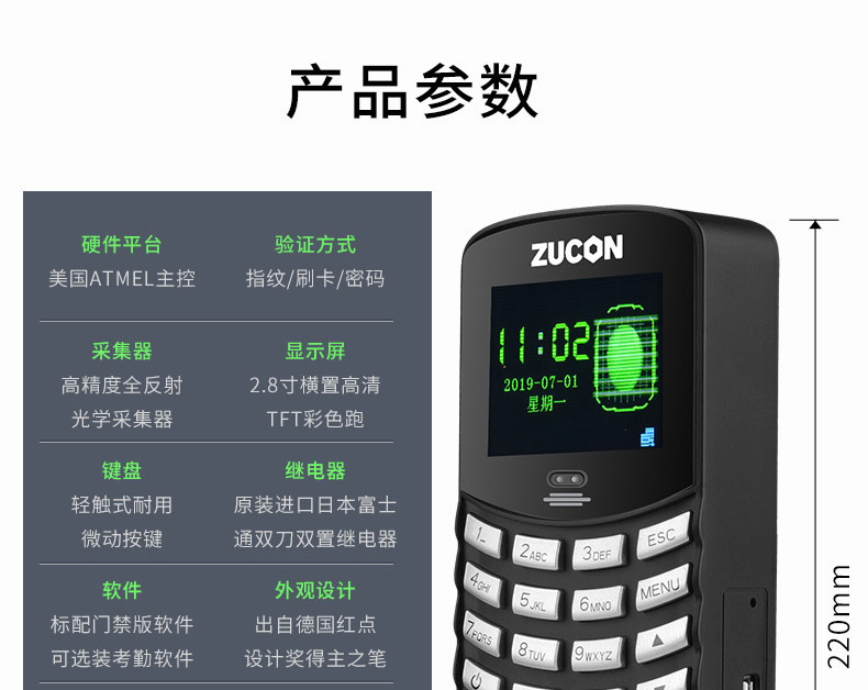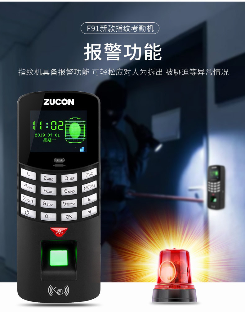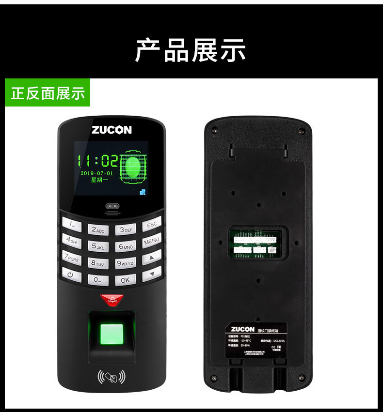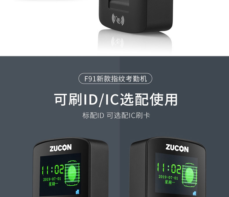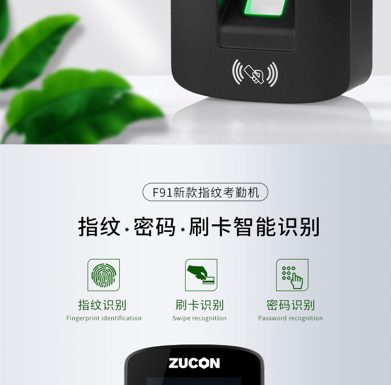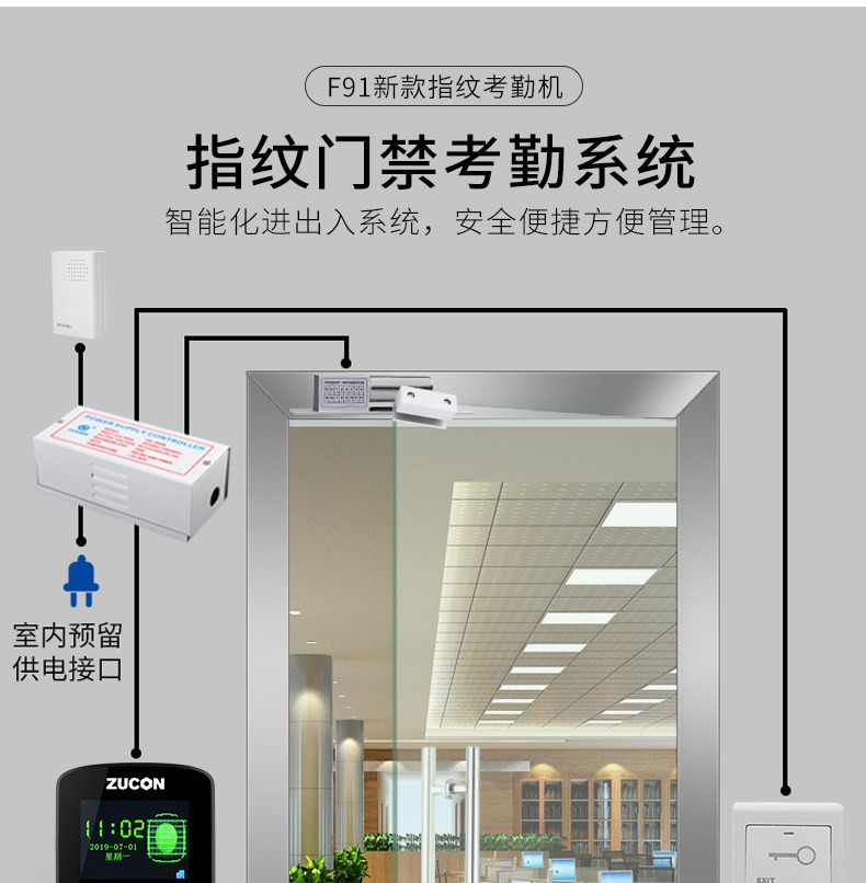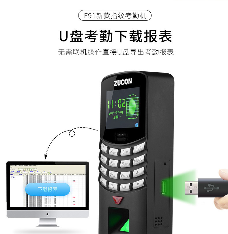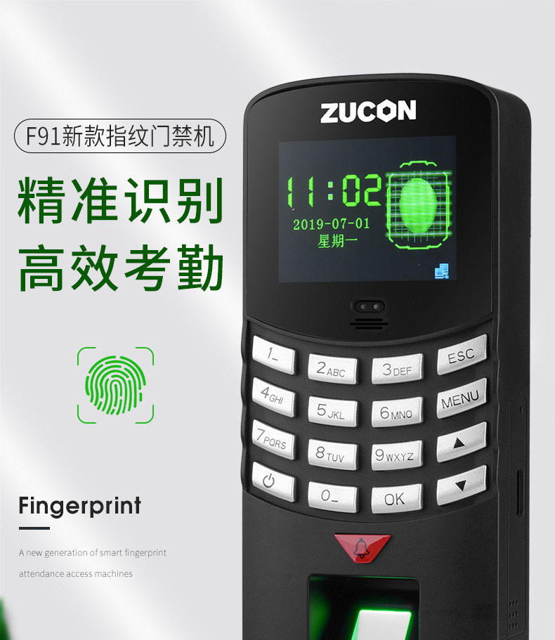ZUCON祖程F91指紋門禁一體機辦公考勤主機網絡U盤下載數據3000大容量