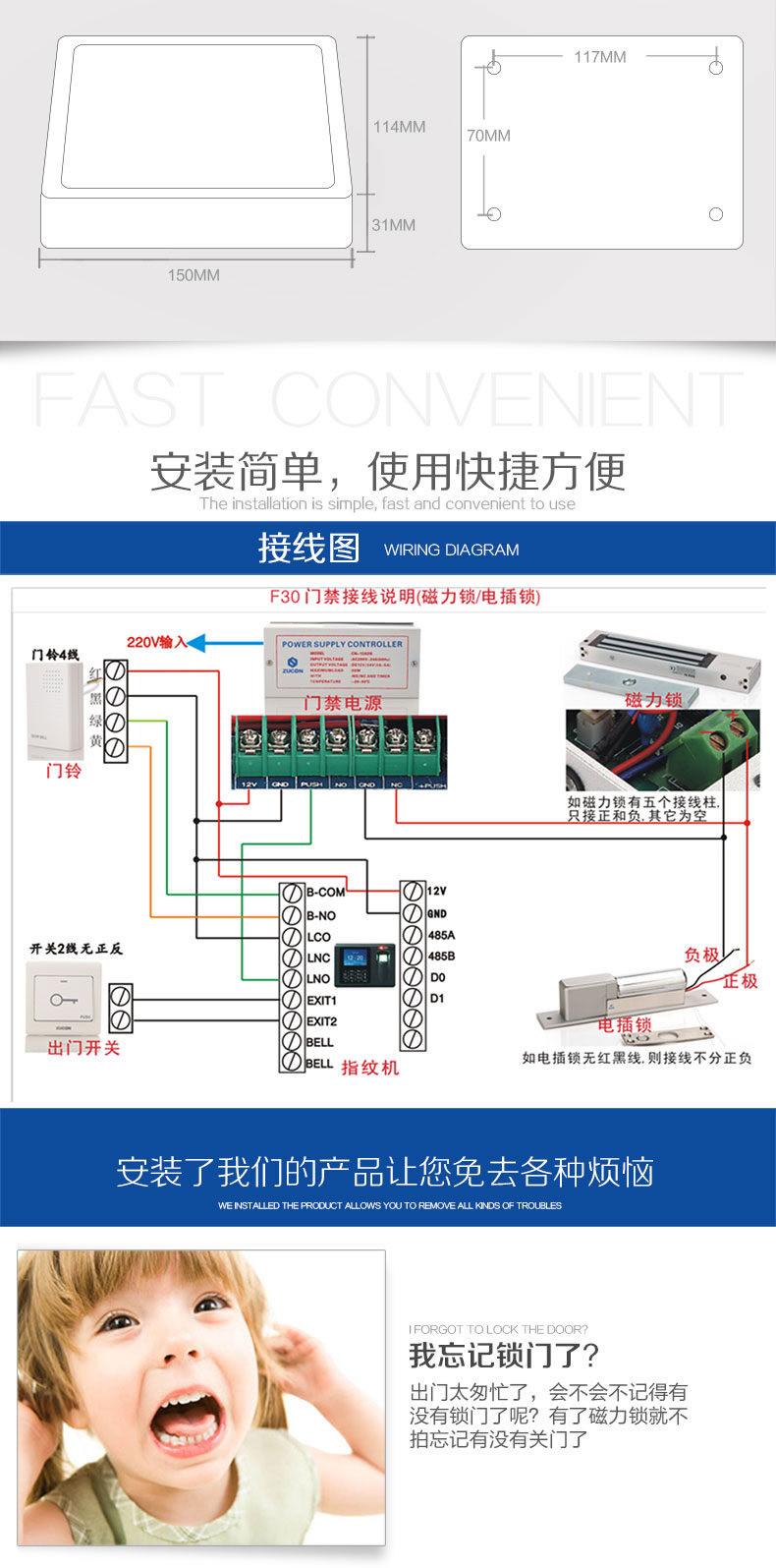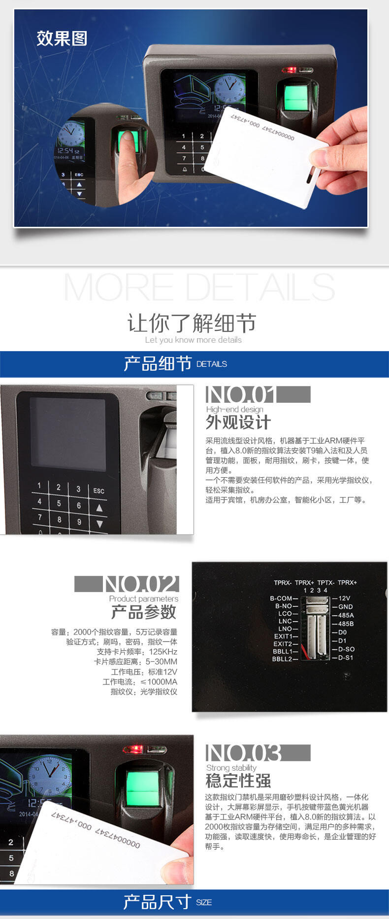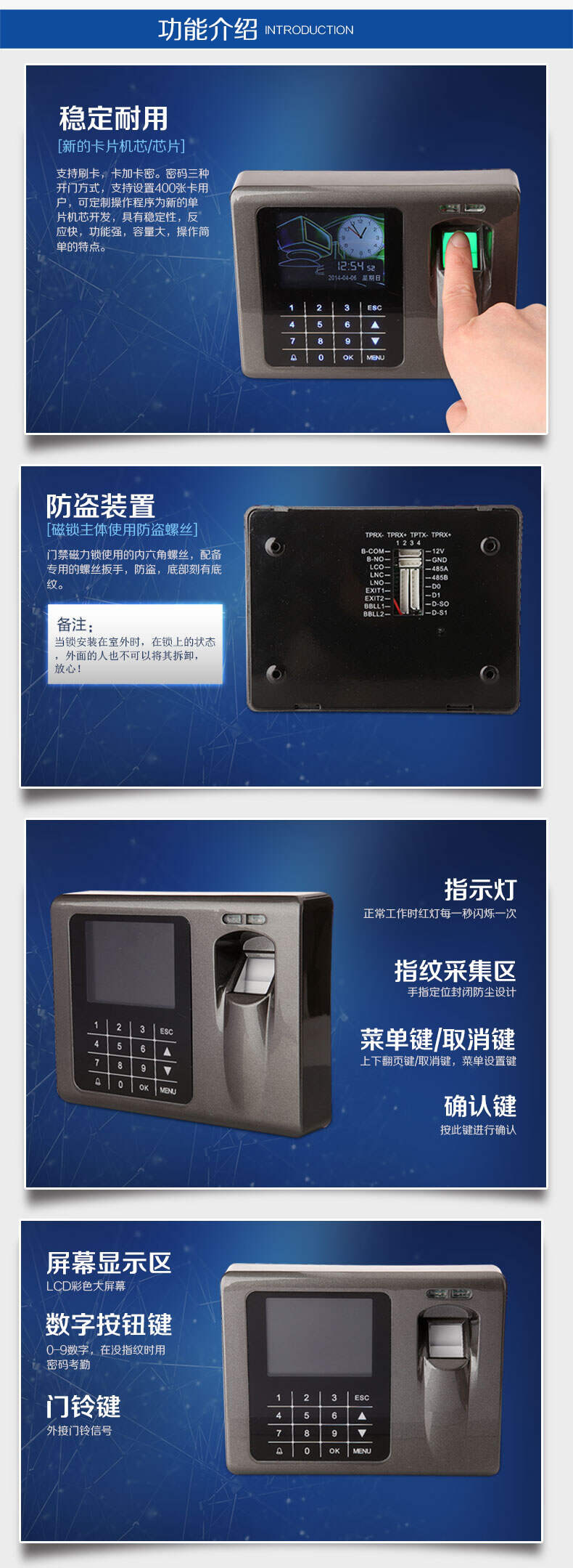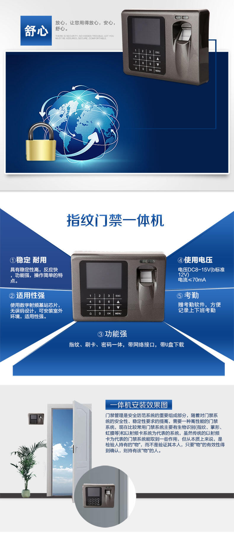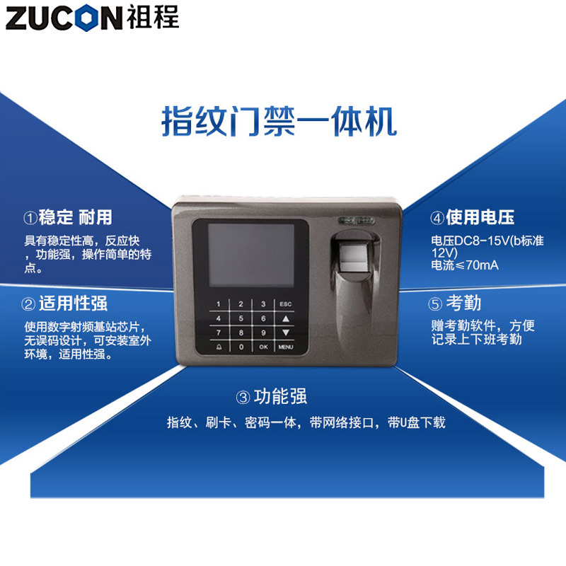 ZUCON祖程F30彩屏指紋門禁刷卡考勤機 網絡U盤下載 指紋門禁主機