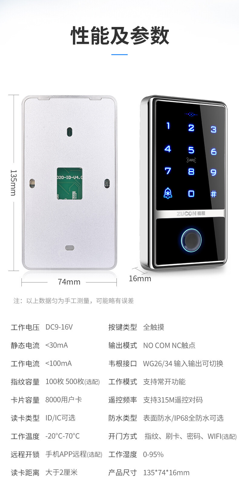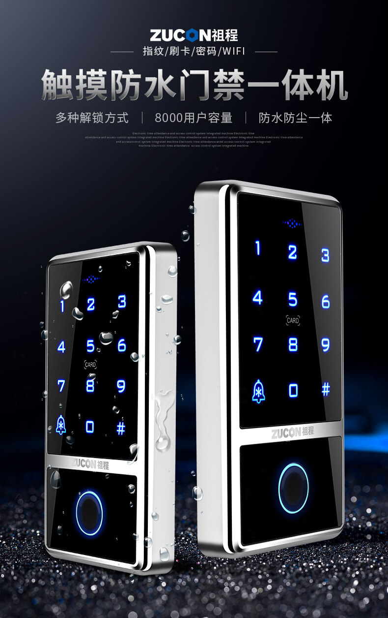ZUCON祖程F1室外防水門禁系統一體機指紋刷卡讀卡器門禁主機IDIC讀頭