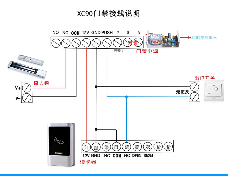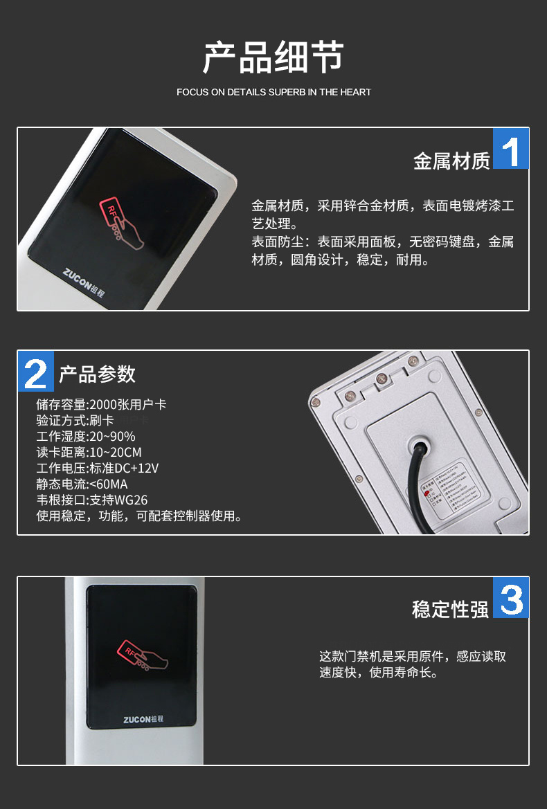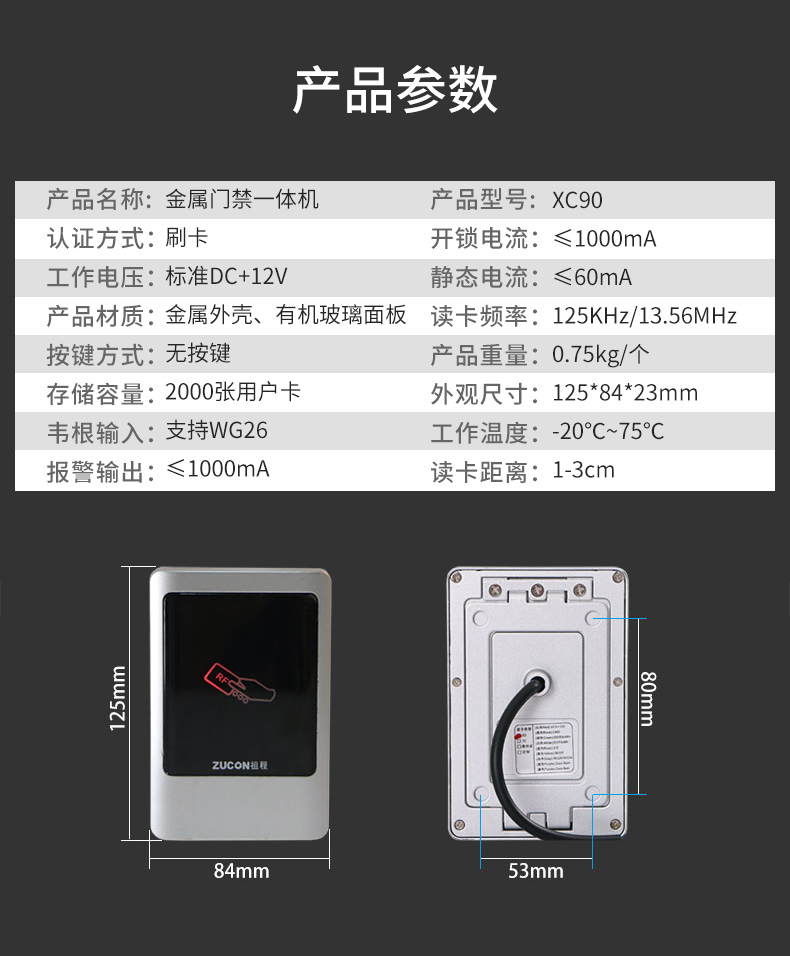 ZUCON祖程XC90金屬門禁讀卡器 室外門禁一體機防水門禁系統讀頭