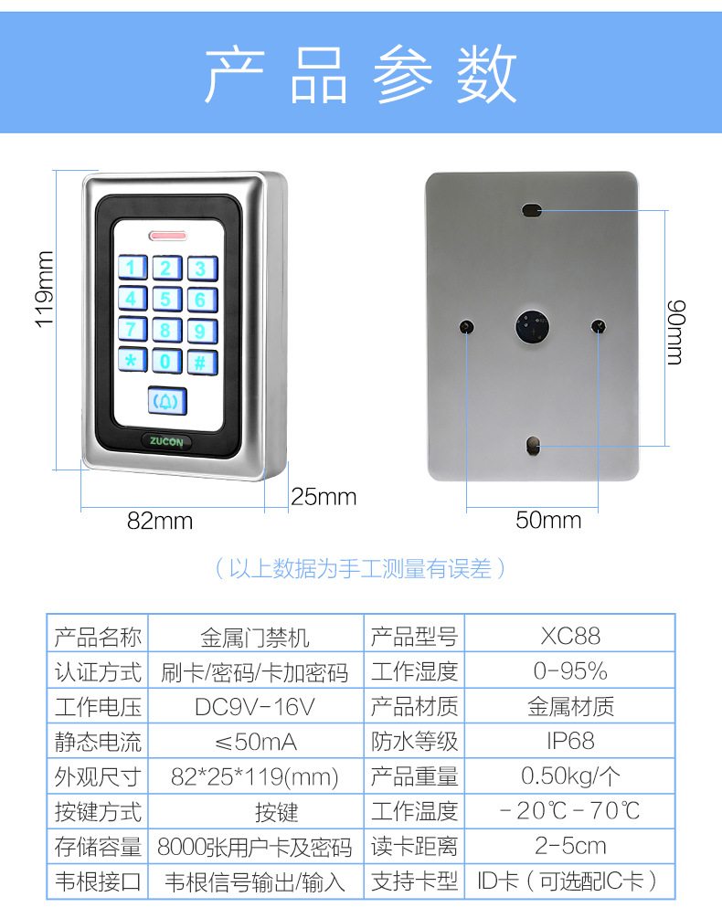ZUCON祖程XC88金屬門禁機一體機XC88室外防水門禁ID、IC讀頭