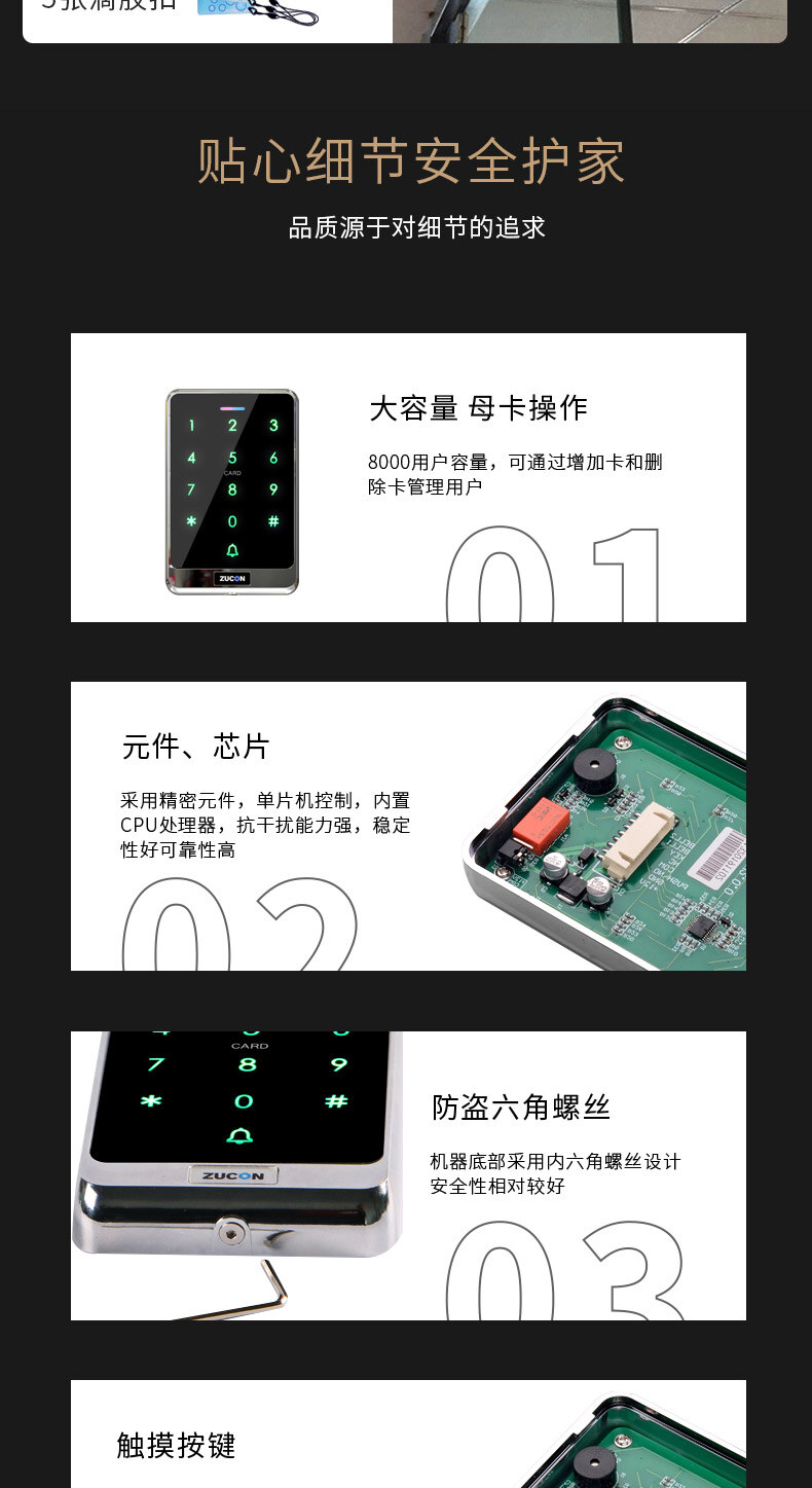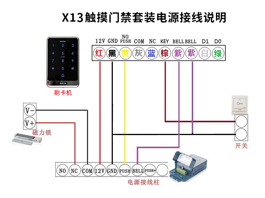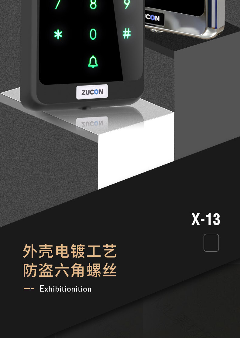 ZUCON祖程X13觸摸門禁系統(tǒng)ID選配IC刷卡電子密碼一體機(jī)配套磁力鎖電插鎖