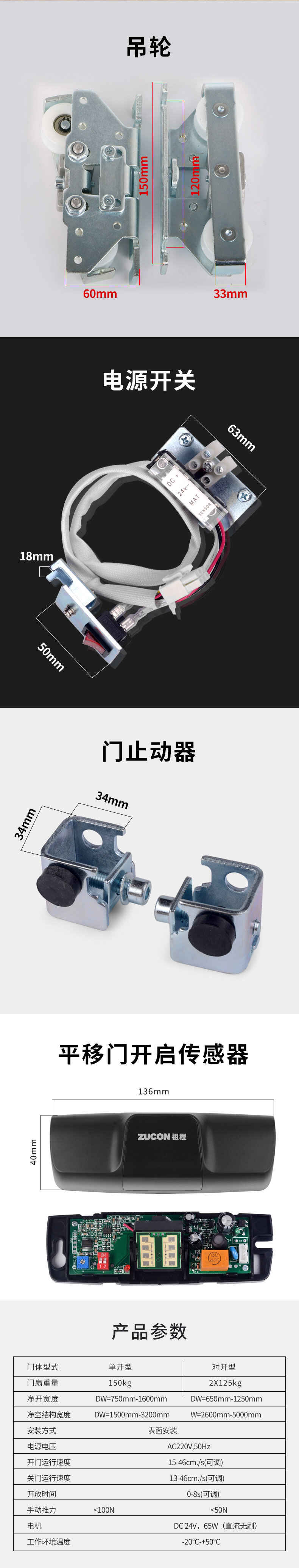 ZUCON祖程AT100輕型自動感應平移門機組電動玻璃門感應門電機整套電動門禁系統
