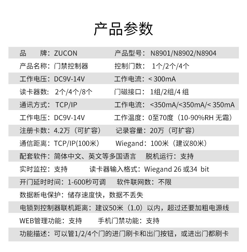 ZUCON祖程N8900系列聯網門禁控制器 單門 雙門 四門 門禁系統主板聯網控制器